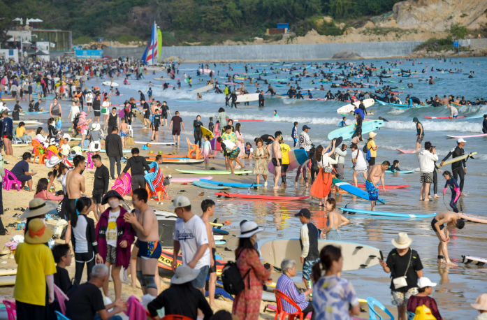 三亚后海“破浪”出圈 小渔村成冲浪胜地