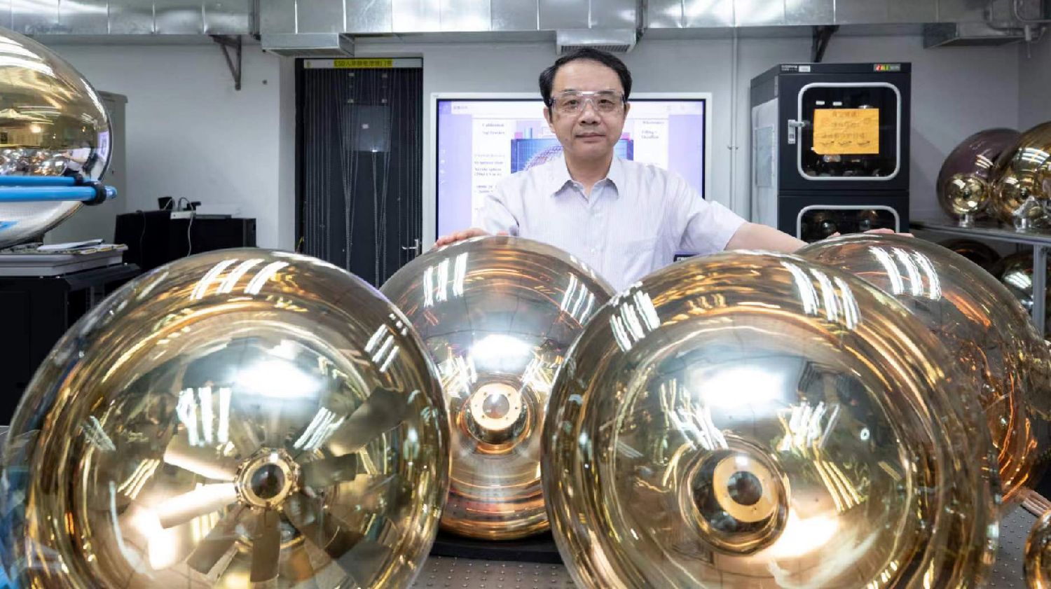 王贻芳院士在光电倍增管实验室。(图/中新社)