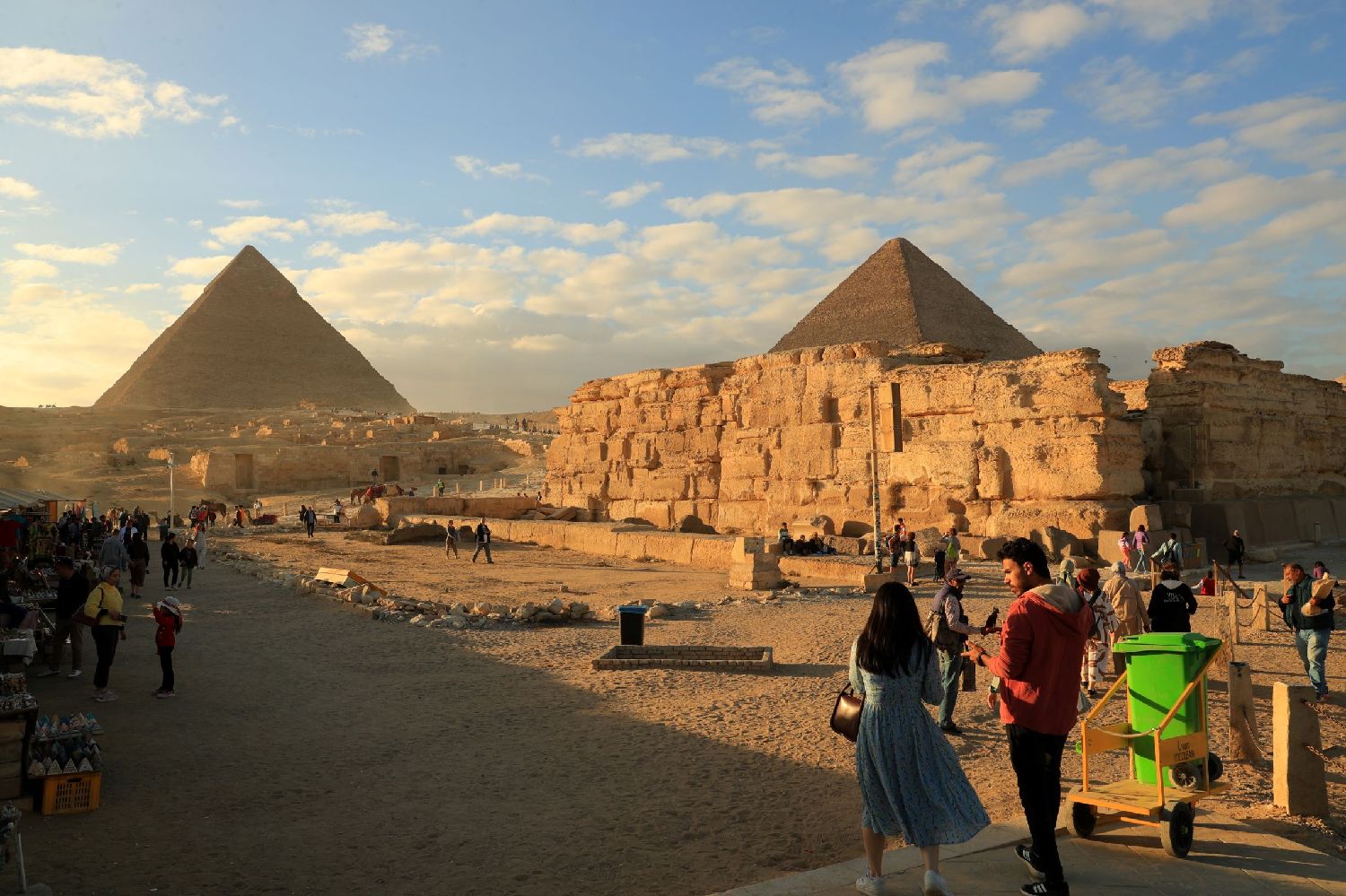 图为游客在埃及吉萨金字塔景区游览。(图/新华社)