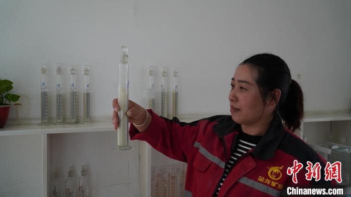 5月14日,一家企业的质检部工作人员正在观察猫砂水溶效果。单德志摄