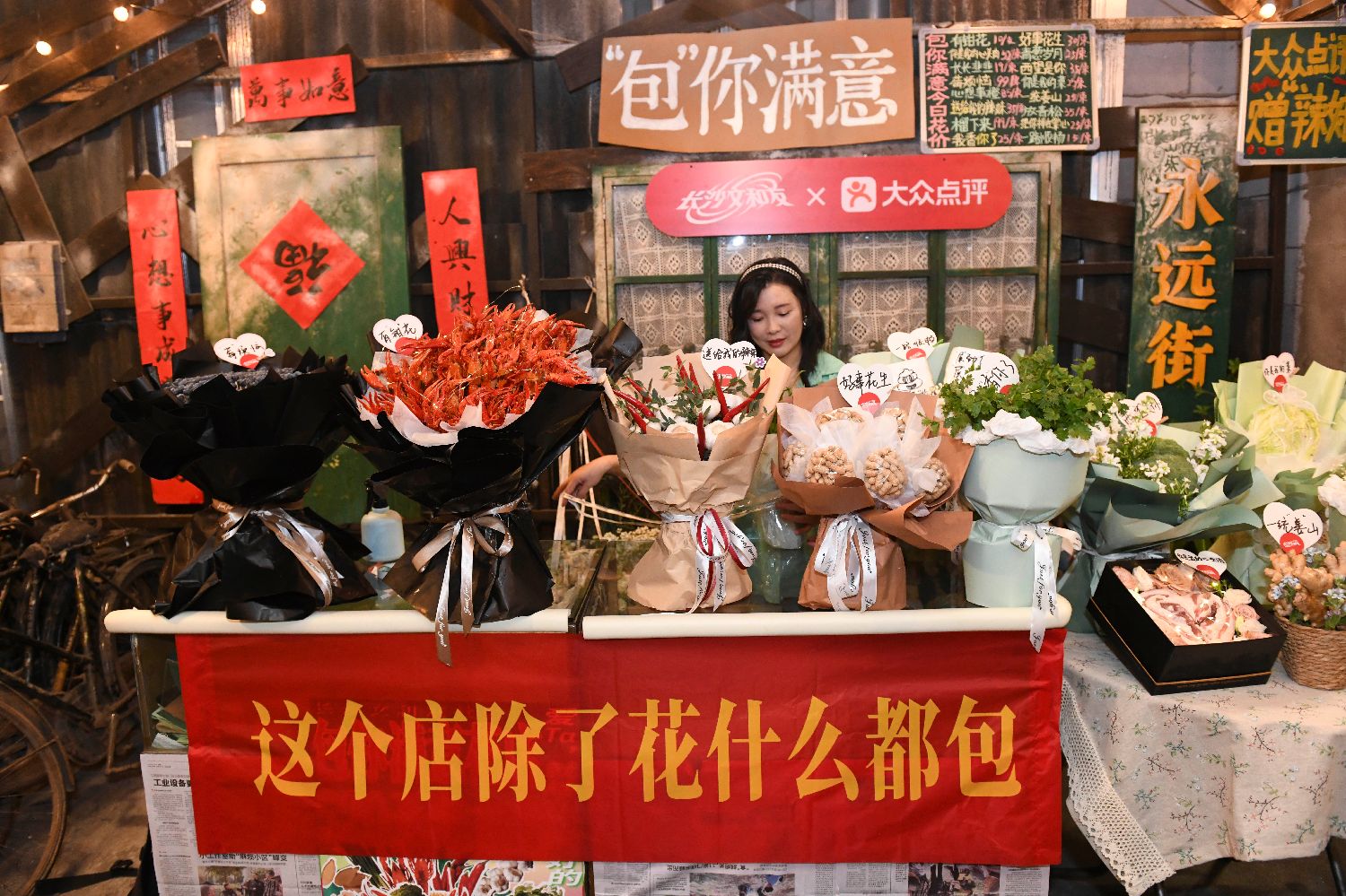 小龙虾、香菜做花束 “520”长沙趣味花店受捧