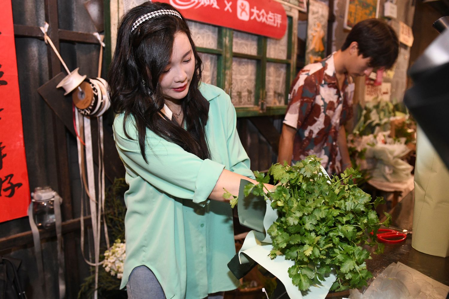 5月20日,店主制作香菜花束。(中新社)