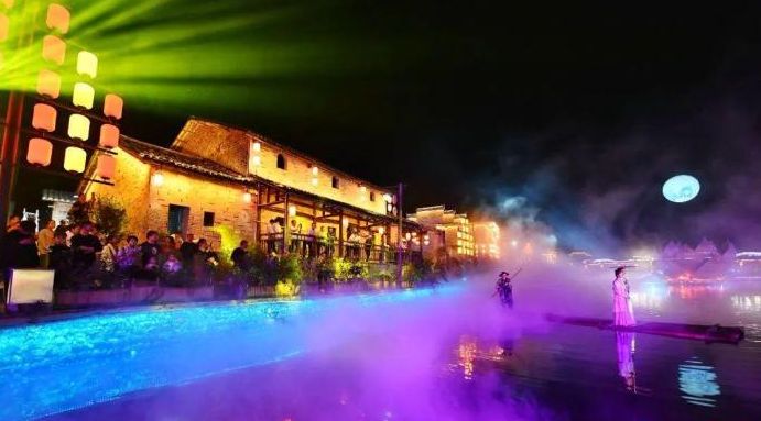 图为乐安县流坑古村演艺广场夜景。(图/中新网)