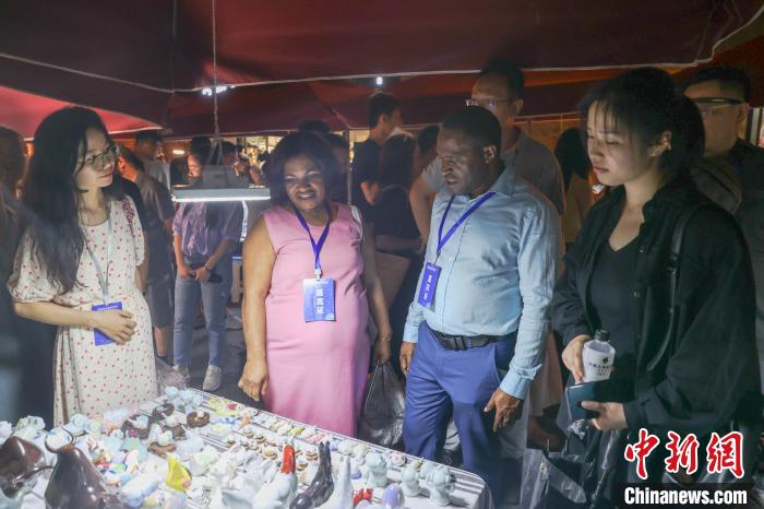 2023年6月17日晚,外国驻华使节在游览景德镇陶溪川周末市集。 刘力鑫摄