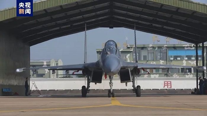 23日,东部战区空军出动数十架次战机成体系实施环台岛战巡、绕外岛巡航。(图/大陆央视新闻截图)