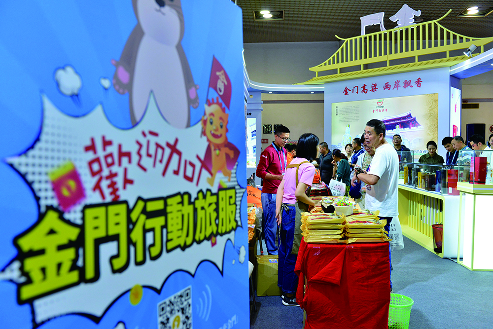 24日,第十九届海峡旅游博览会金门馆前,观展者接踵而至。(图/中新社)