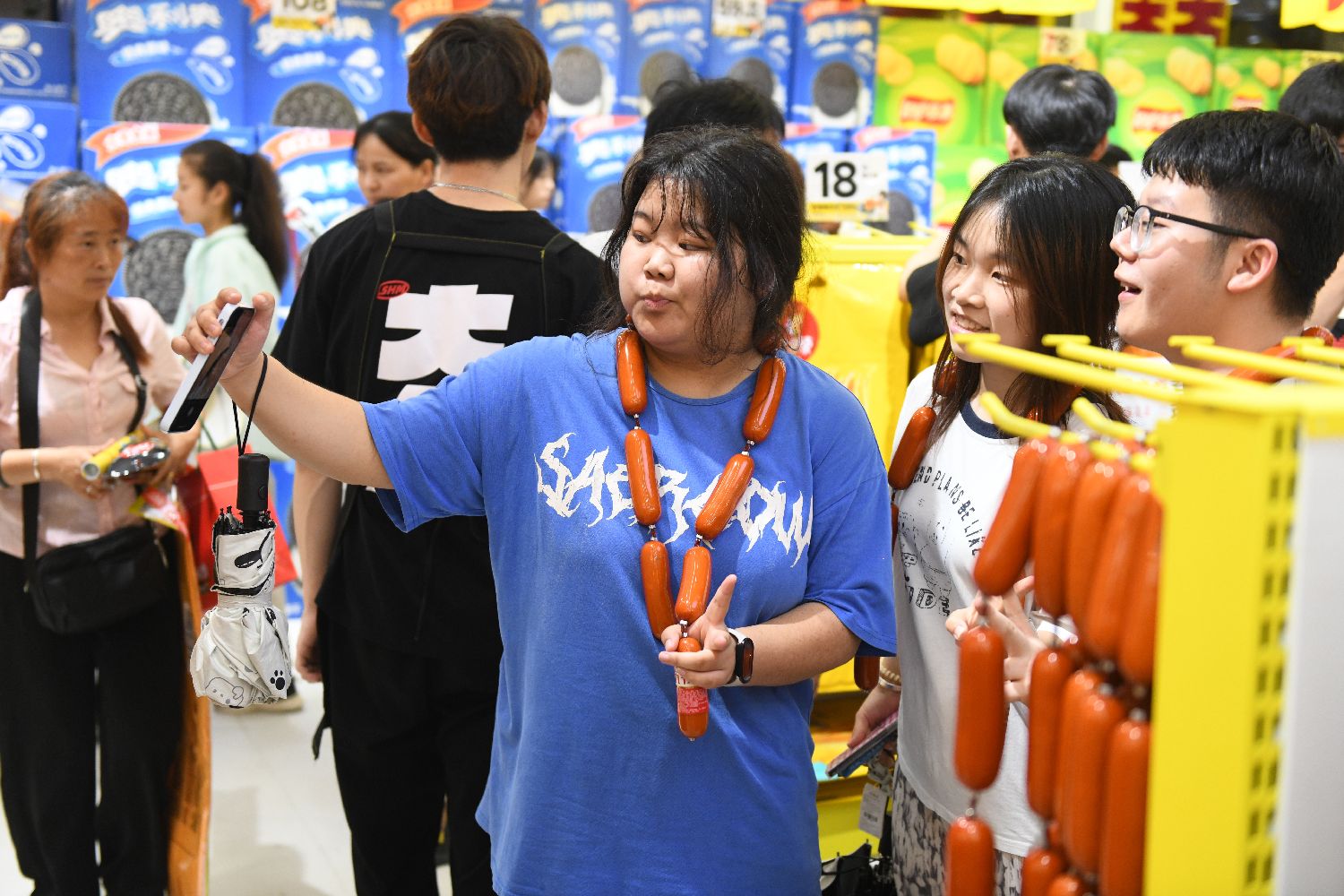 连日来,湖南长沙一家零食店推出的上百款超大包装零食成了近期长沙文旅消费新热点,这些需要“抱”回家的超大版零食引得市民与游客争相抢购。