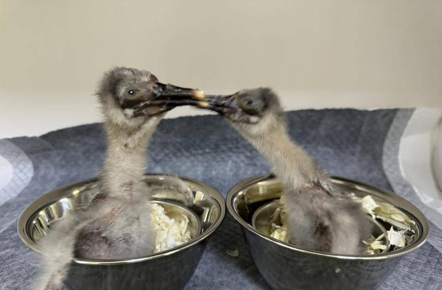 据园区工作人员介绍,三对朱鹮夫妻于今年四月初开始产蛋,朱鹮宝宝于五月初开始破壳而出。雏鸟孵化出壳时体重约为50克。目前朱鹮宝宝们各项指标都比较稳定,在育雏箱内进行保温保湿、观察投喂。大概半个月左右脱温,离开育雏箱,继续进行人工喂养的日常管理。
