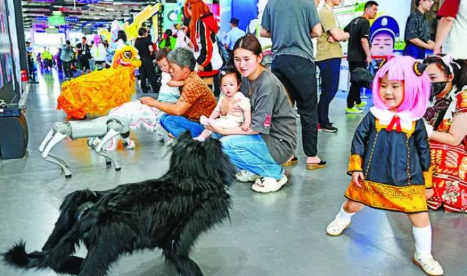 图为动漫节现场,孩子们与赛博萌宠机械狗互动。(图/杭州潮新闻)