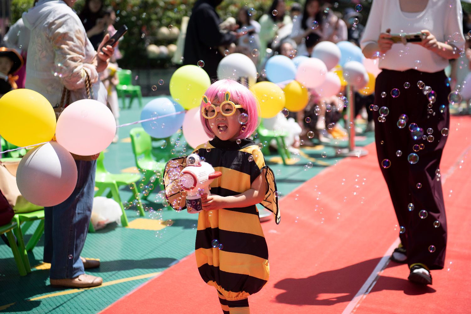 5月29日,在安徽省人民政府机关幼儿园望湖分园,小朋友在变装秀活动中走红毯。(新华社)