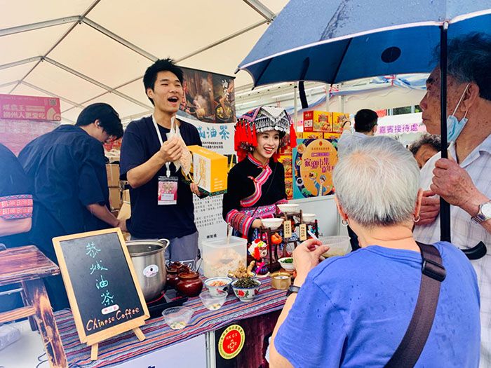 家乡市集广西摊位现场制作恭城油茶。(图/中新社)