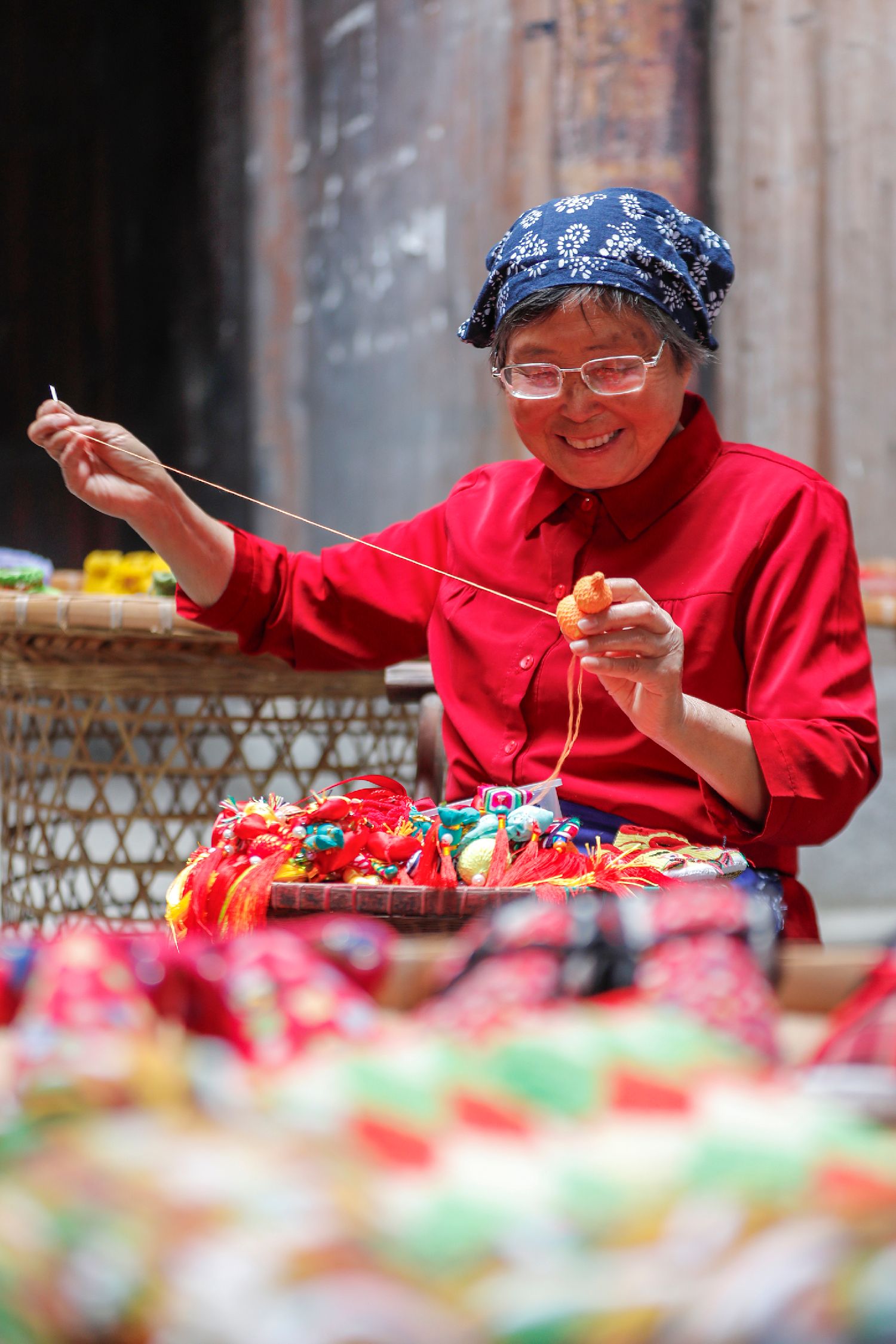 临近端午佳节,在安徽省黄山市歙县许村,村民用五彩丝线、棉绸布、草药香料等材料,缝制非遗“徽州端午锦”,蕴含平安健康的美好祝愿。