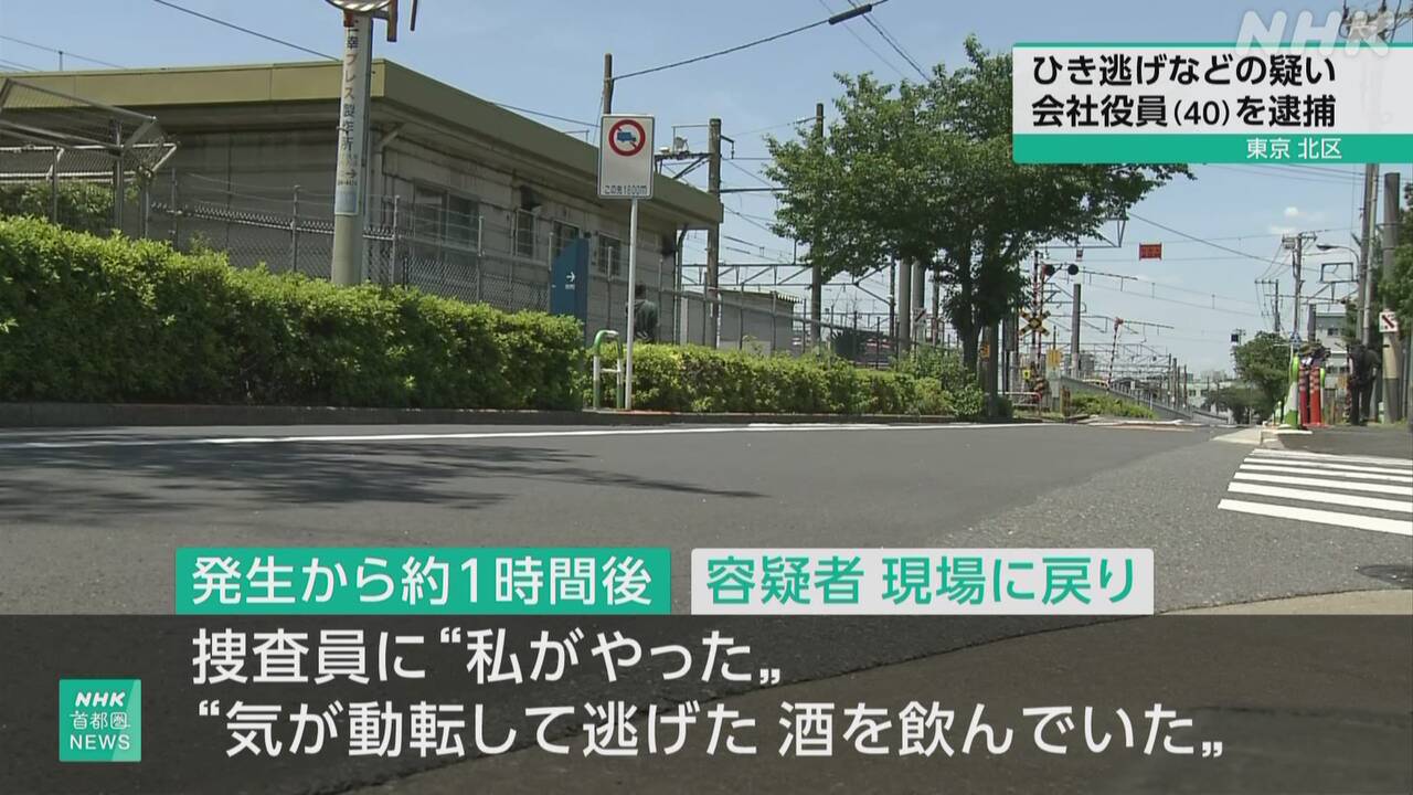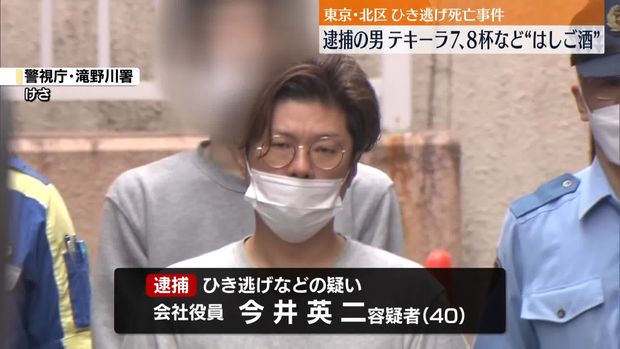 据NHK报道,被逮捕的是足立区新田3丁目的公司高管今井英二(40岁)。警视厅称,8日凌晨0点20分左右,今井嫌疑人在北区东田端2丁目的街道上,驾驶轿车撞上了正在过马路的附近居民、公司职员染谷贤治(59岁),然后逃逸。