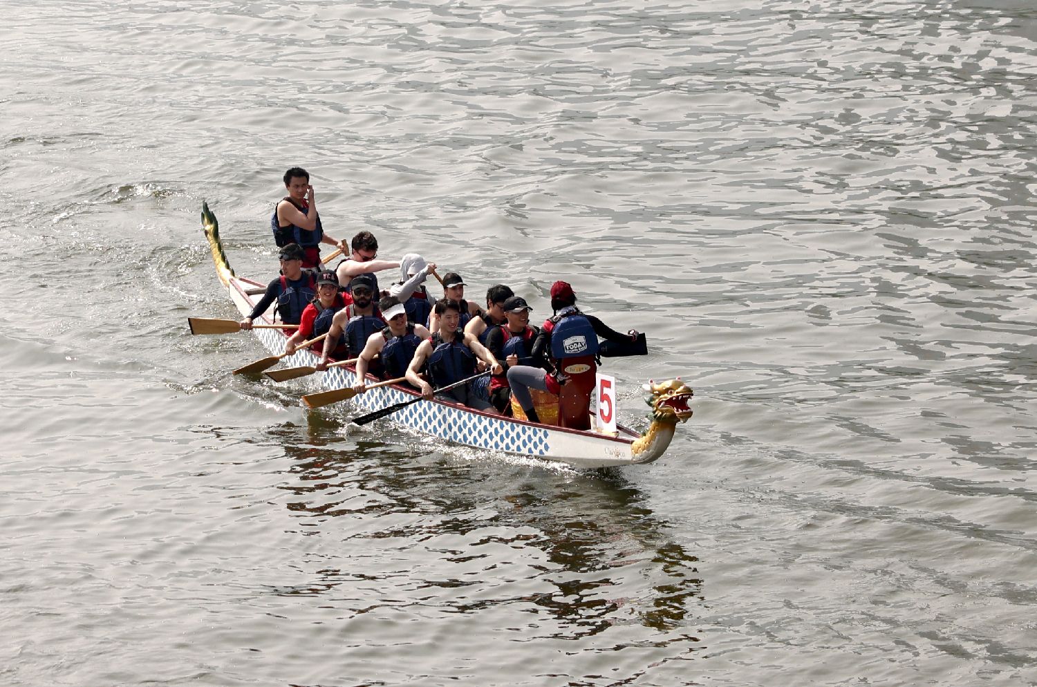 2024年6月10日,在华留学生组成的七洲八洋国际龙舟队在小组预赛结束后返航。(卞亚文 摄)