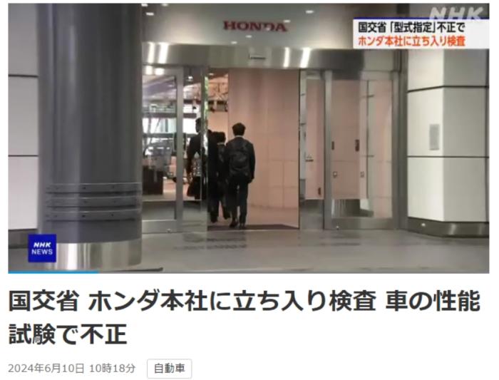 6月10日上午,日本国土交通省对位于东京都港区的本田公司总部开展突击调查。