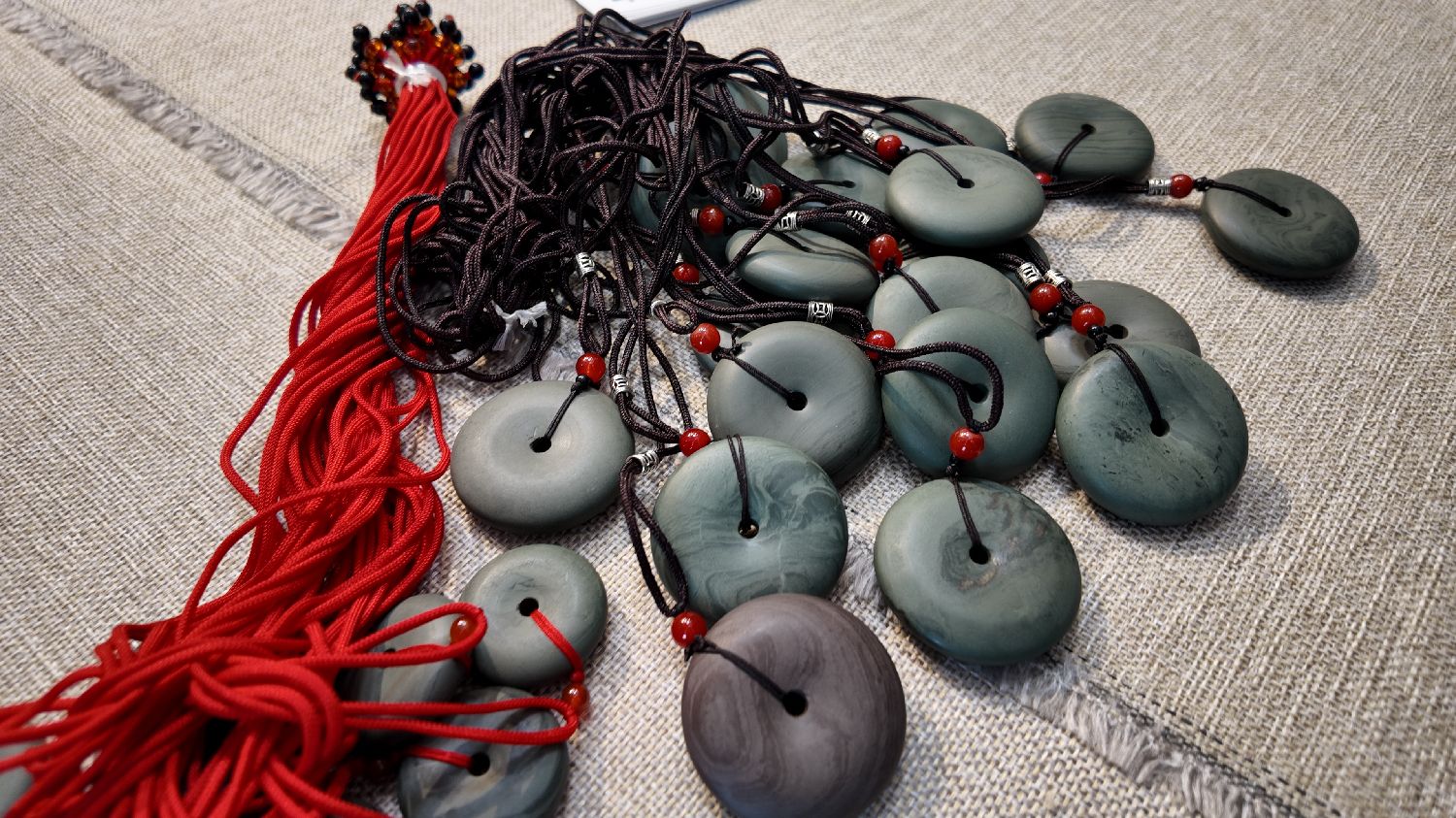 图为用洮砚石料制作而成的平安扣。(山佳 摄)