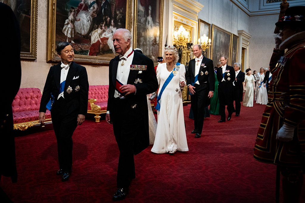 “当地时间25日晚,英国国王查尔斯三世和王后卡米拉在白金汉宫举办国宴,招待进行国事访问的日本德仁天皇和妻子雅子皇后。”据路透社26日报道,早前抵达伦敦进行国事访问的日本德仁天皇夫妇,受到英国王室的热情接待,不少外媒对英方在德仁天皇访问的细节上展开追踪报道。《环球时报》驻英国特约记者注意到,英国民间并未表现出过多热忱。