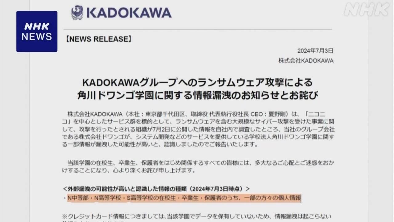 KADOKAWA遭网络攻击,学生个人信息或遭泄露