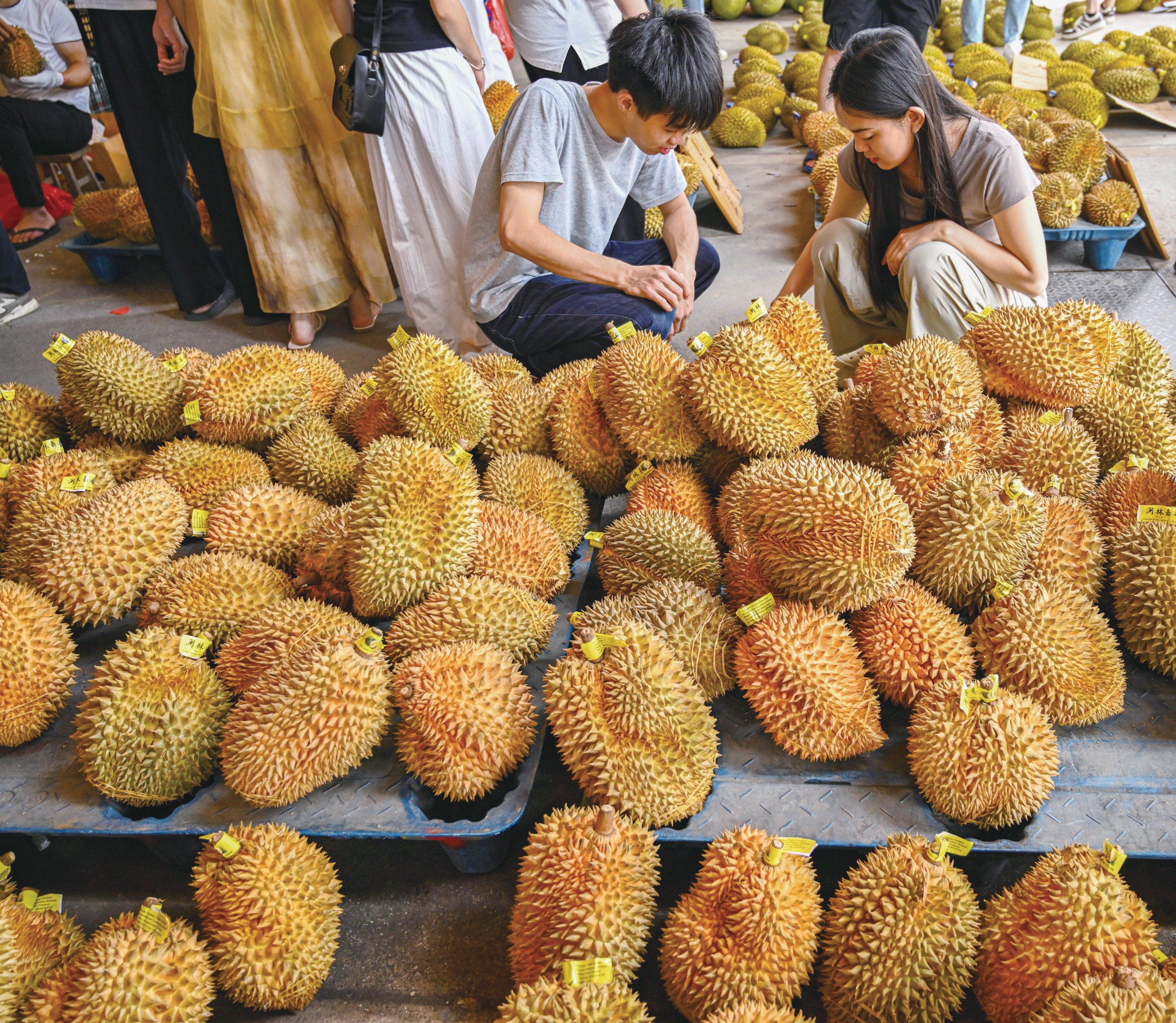 【环球时报记者杨沙沙赵觉珵环球时报驻泰国、新加坡特派特约记者张矜若辛斌】“这里人好多啊!”在山姆会员超市深圳前海店的水果选购区,身边不时可以听到这样的感慨。人群的中央,一箱箱占据着“C位”的金色泰国金枕榴莲正在被顾客排队挑选。卖场内其他榴莲产品也享有极高人气,不仅有榴莲冰淇淋、榴莲泡芙、榴莲千层蛋糕等制品,还有进口的冷冻猫山王榴莲果肉,它们几乎都出自泰国、越南和马来西亚三地。尽管售价并不便宜,但不少产品的补货速度已经明显拼不过顾客“剁手”的手速。这样的消费热情,不仅出现在深圳等南方城市,也越来越多地在北京、西安等北方城市上演。在榴莲味道飘向中国越来越多城市商超背后,东南亚多个榴莲生产国都在全方位发力,争取在中国占领更大的市场份额。