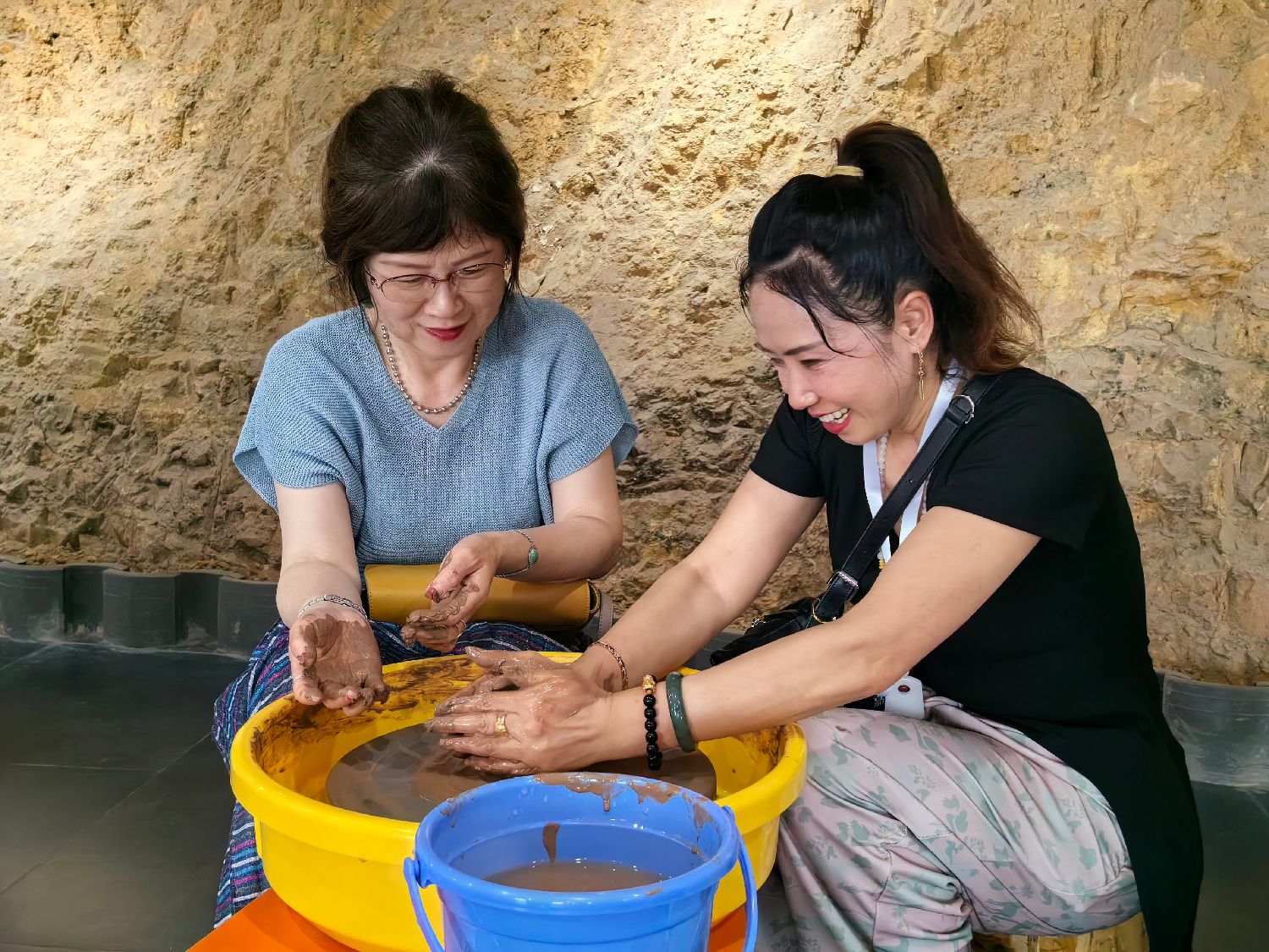 参加“行走中国·2024海外华文媒体高层川渝行”的华文媒体代表7月5日参访位于四川省内江市隆昌市的隆窑遗产博物馆,体验制陶乐趣,感受上千年来古今陶艺匠人的智慧结晶。