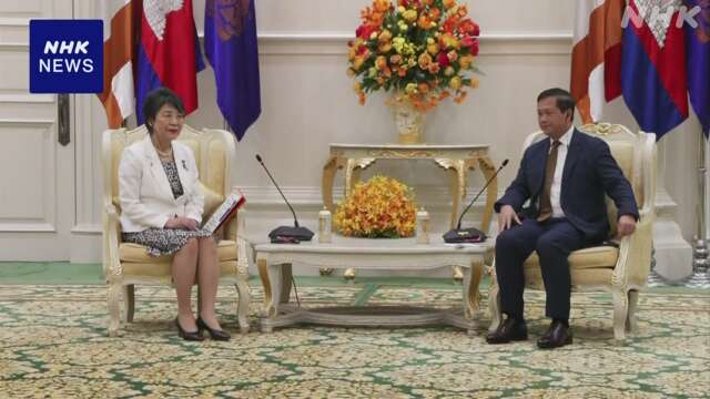 上川外务大臣于日本时间6日上午在柬埔寨首都金边与洪马内特首相会谈。上川大臣在会谈中表示:“两国的合作领域在稳步扩大,今后希望重点在人才培养和利用日本技术方面展开合作。”