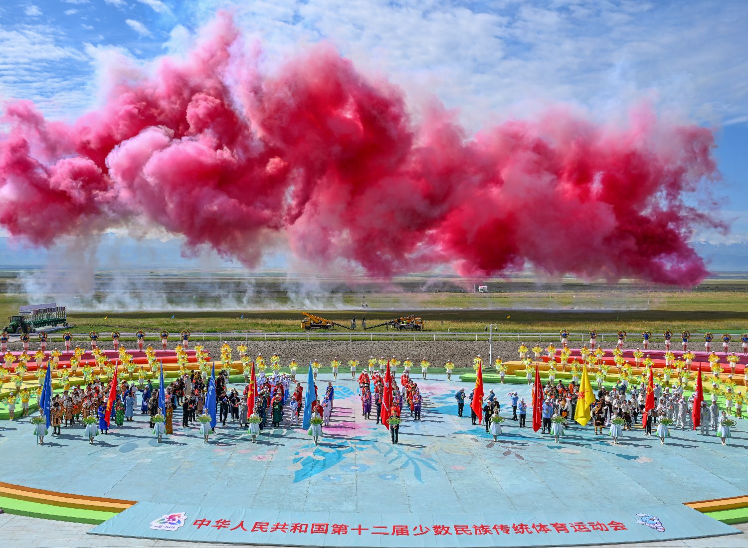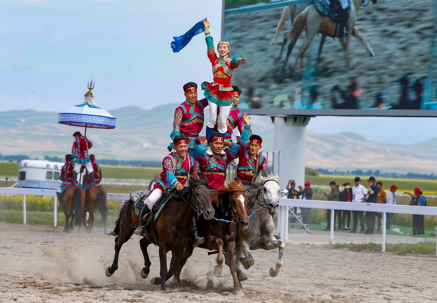 第十二届中国少数民族传统体育运动会马上项目开赛仪式7月8日在新疆昭苏举行。