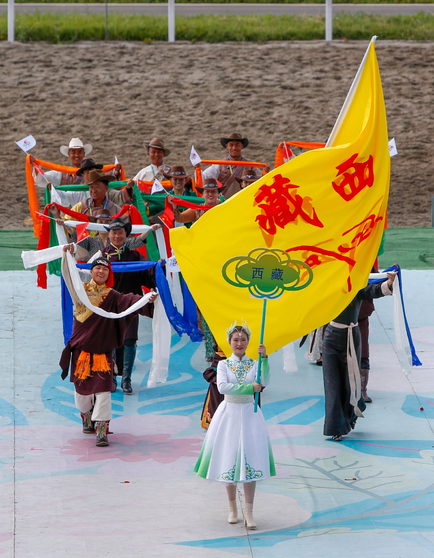 7月8日,西藏自治区代表团在开赛仪式上入场。(新华社)