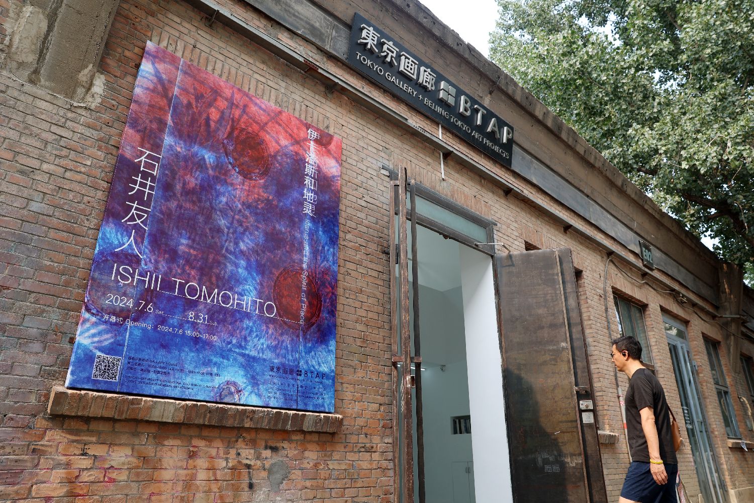 7月9日,参观者走进展厅欣赏展品。近日,日本艺术家石井友人在北京的首次个展《伊卡洛斯和地灵》亮相東京画廊+BTAP。据介绍,本次个展将网罗和展示石井友人在过去十年间的二十余件大小绘画创作,从艺术家长期关注的城市风貌、植物园、石瓦静物到人像主题等等。展览主题《伊卡洛斯和地灵》来自于古希腊神话中伊卡洛斯因使用人工设计的翅膀飞翔过高,而被太阳融化跌入海中的故事,隐喻着人类过于依赖现代技术的危险性。(黎明 摄)