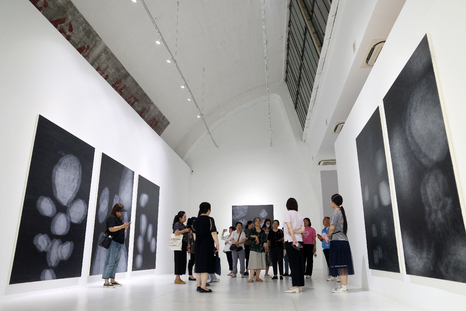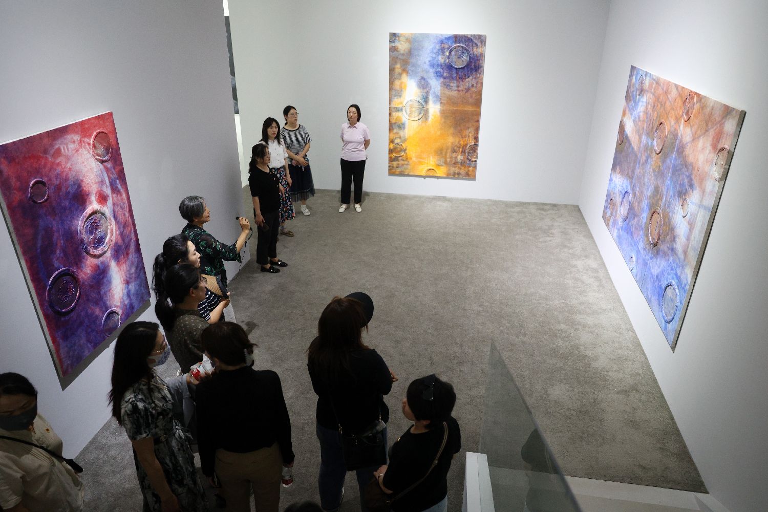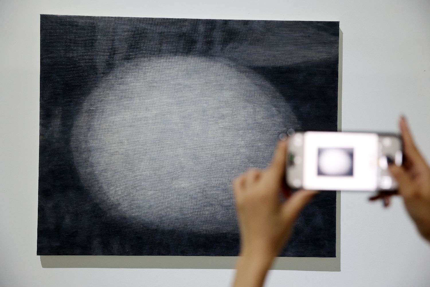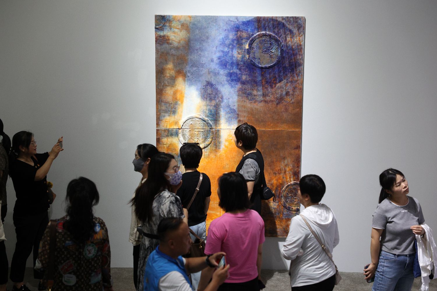 7月9日,参观者在展厅内拍摄展出的作品。(黎明 摄)