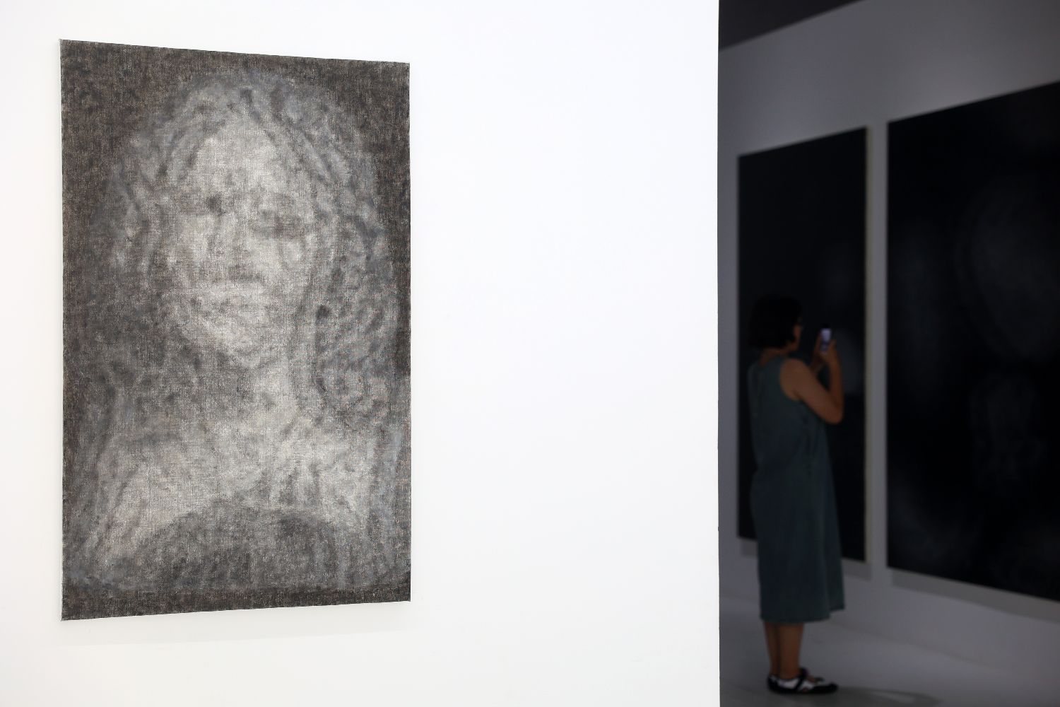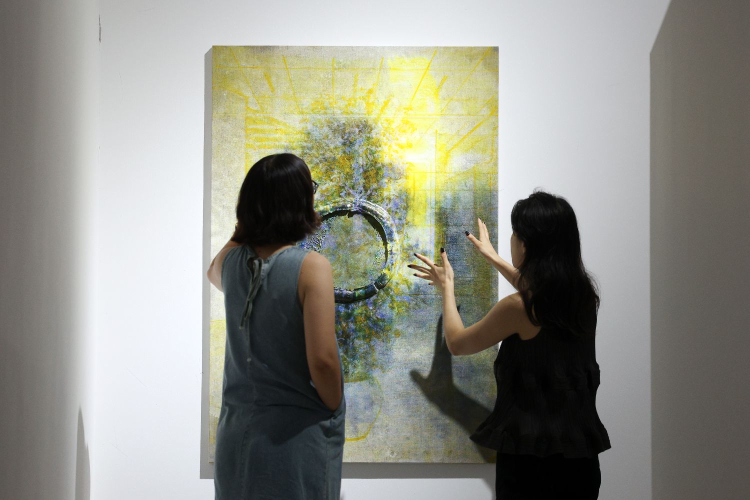 7月9日,参观者在展厅内欣赏展出的《次浮雕》系列作品。(黎明 摄)