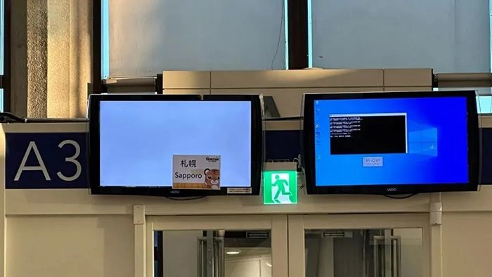▲跳电导致桃园国际机场屏幕故障,无法显示航班资讯。(图/台北《联合报》)