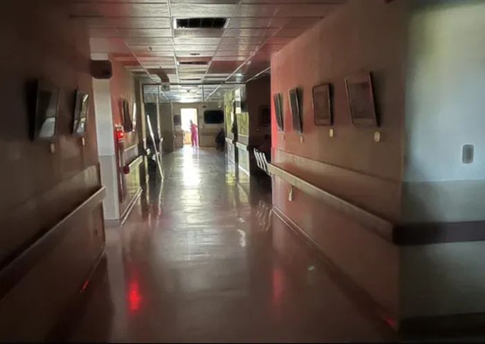▲金门停电,医院走廊一片漆黑。(图/台北《联合报》)