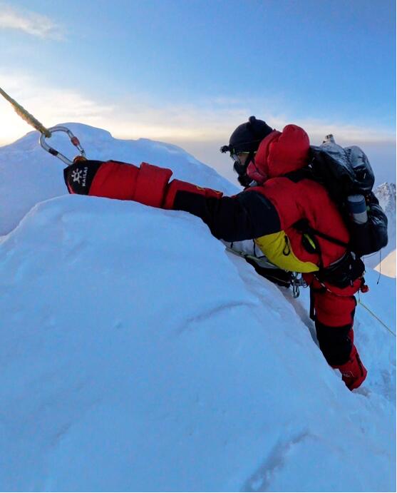 为了拍摄完整的攀登路线,他必须分别在珠峰大本营、c1营地、c2营地、c3营地、c4营地以及顶峰逐段拍摄一镜到底的航拍视频,再剪辑形成完整视频,这意味着摄影师必须先登顶珠峰。