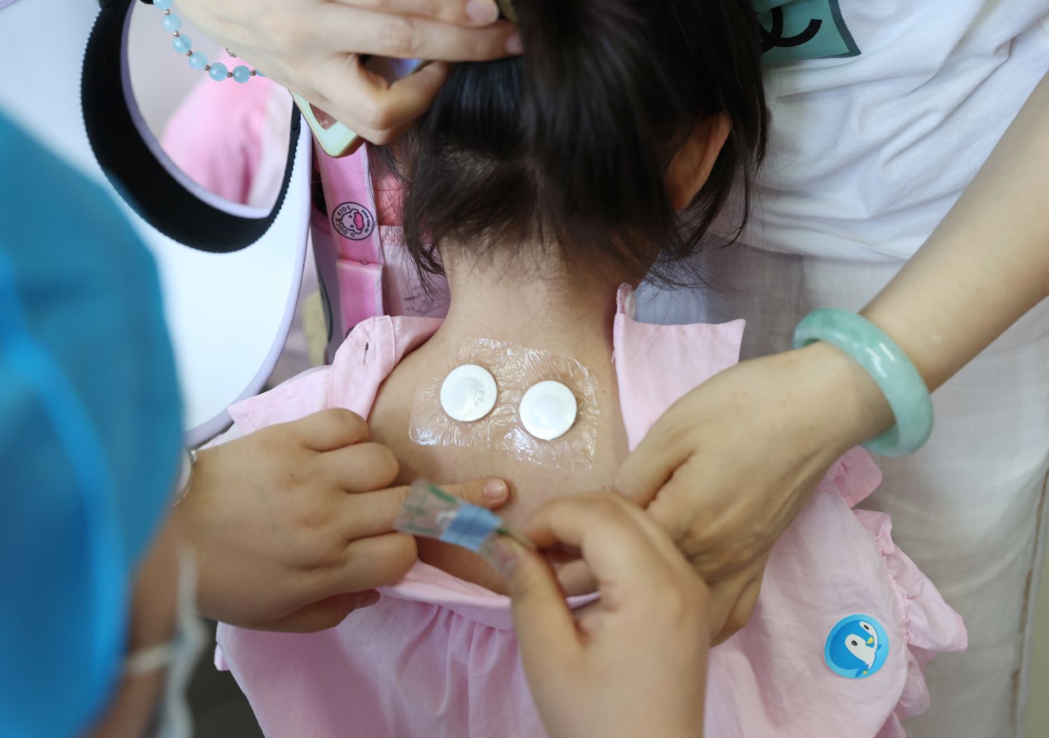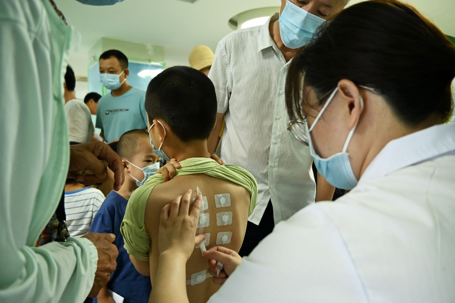 7月15日,在宁夏回族自治区中医医院暨中医研究院,家长带着孩子进行“冬病夏治三伏贴”贴敷治疗。当天,宁夏银川市各大中医院、综合医院中医科和社区卫生服务中心“三伏贴”正式开贴。(中新社)