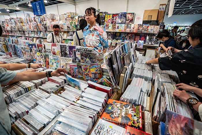 一年一度的重大文化盛事香港书展自7月17日起至23日在香港会议展览中心举行,汇聚了全球数十个国家及地区的影视文学著作和展品,连日来吸引大批市民和旅客入场选购心仪书籍。有书展参展商满意首日的人流量,预计今年销售额与去年相若。