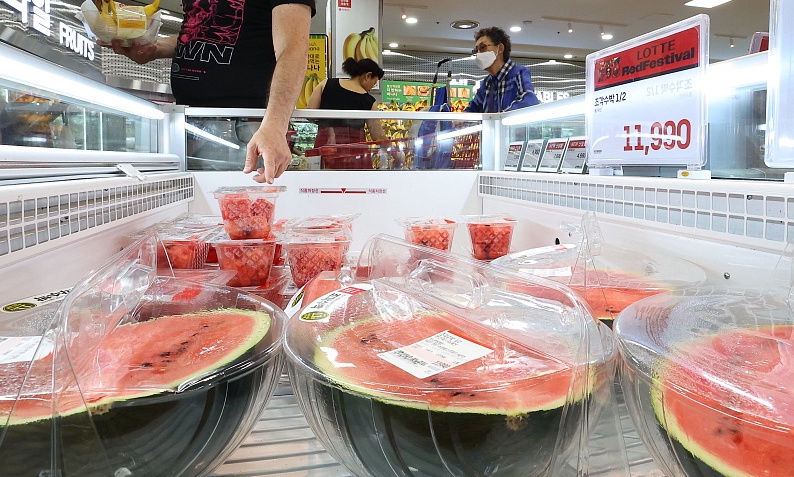 有预测称,由于梅雨天气和频繁的暴雨导致西瓜产量减少,单个西瓜价格飙升至4万-5万韩元(1元人民币约合191韩元)的“西瓜大乱”可能会重演。