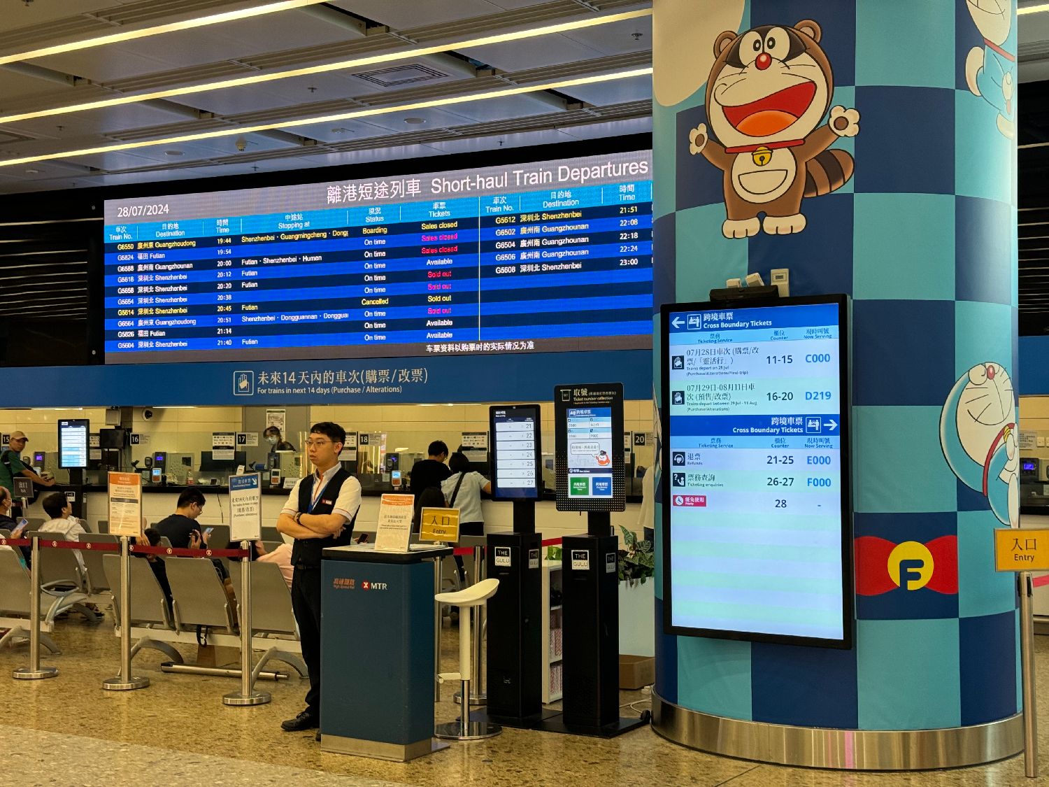 图为香港西九龙站售票处的“哆啦A梦”装饰。(中新社)