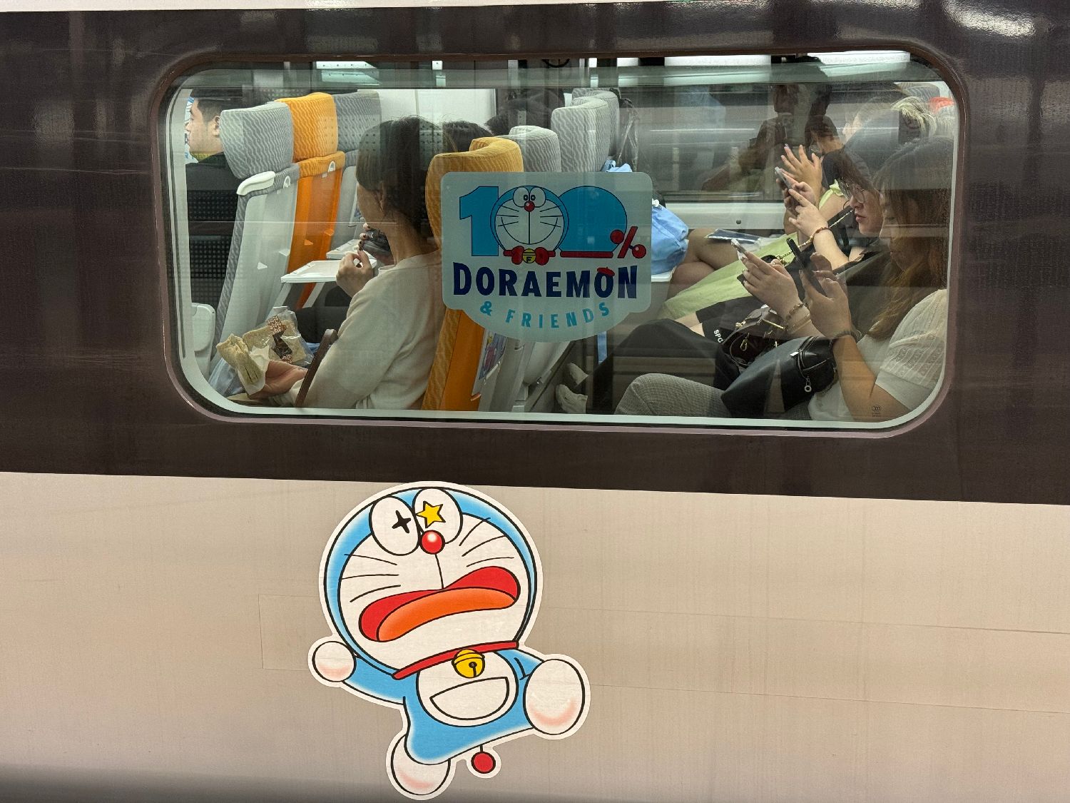 图为列车车窗处的“哆啦A梦”图案。(中新社)