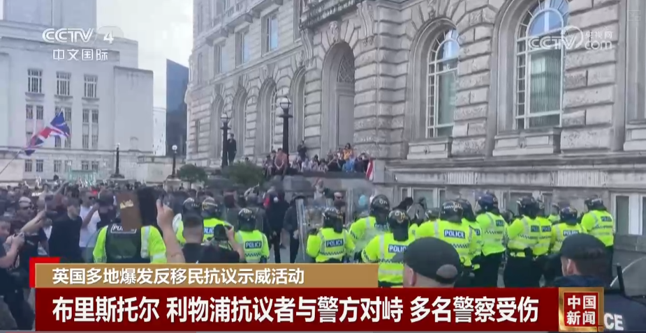 英国多地近日发生暴力骚乱。(图/中国央视新闻视频截图)