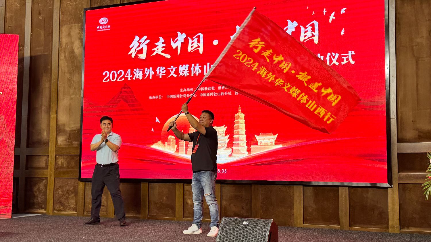 2024“行走中国·报道中国”海外华文媒体山西行活动5日启动。来自10余个国家的20余位海外华文媒体高层、记者编辑围绕晋商文化、古堡文化、康养文化等进行深度考察采访,在“着力加强国际传播能力建设、促进文明交流互鉴”上展现山西新作为、山西新气象。图为活动启动仪式。(凉子摄)