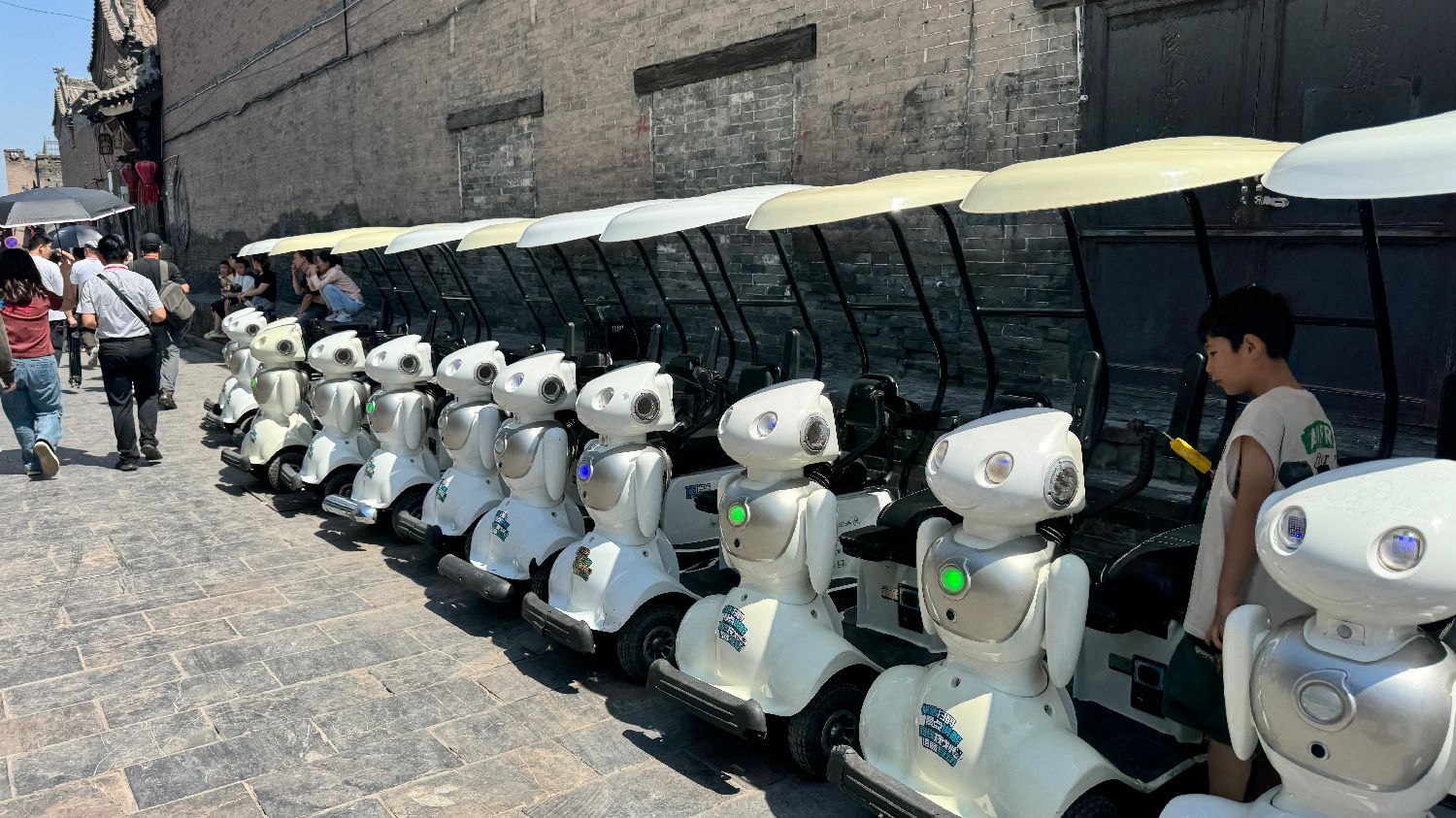 图为平遥古城内供游客租赁的观光电瓶车。(凉子摄)
