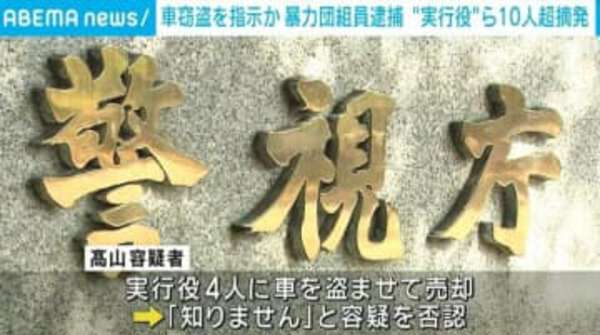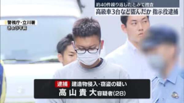 被捕的高山贵大,28岁,是指定暴力团住吉会的成员,居住在群马县伊势崎市。警方表示,他被指控在去年4月盗窃了立川市车库内的3辆汽车及其他价值约155万日元的物品。