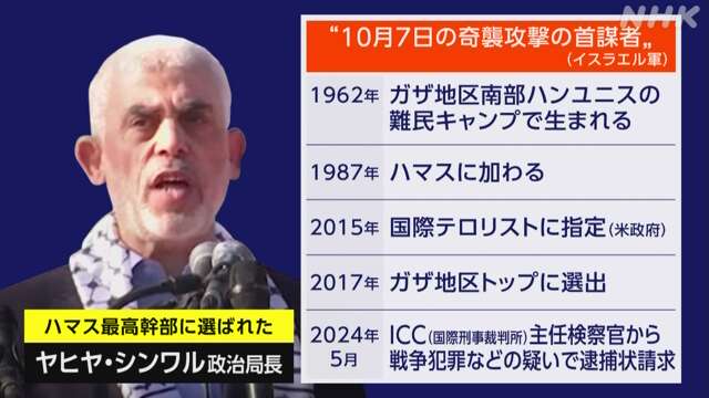 据悉,辛瓦尔在1987年加入哈马斯,参与创建了其军事部门卡萨姆旅。1989年因涉及谋杀和绑架罪被以色列拘留,2011年被释放。2015年被美国政府列为国际恐怖分子。2017年,他被选为加沙地区的领导人,并在哈尼亚被杀后成为新的最高领导人。