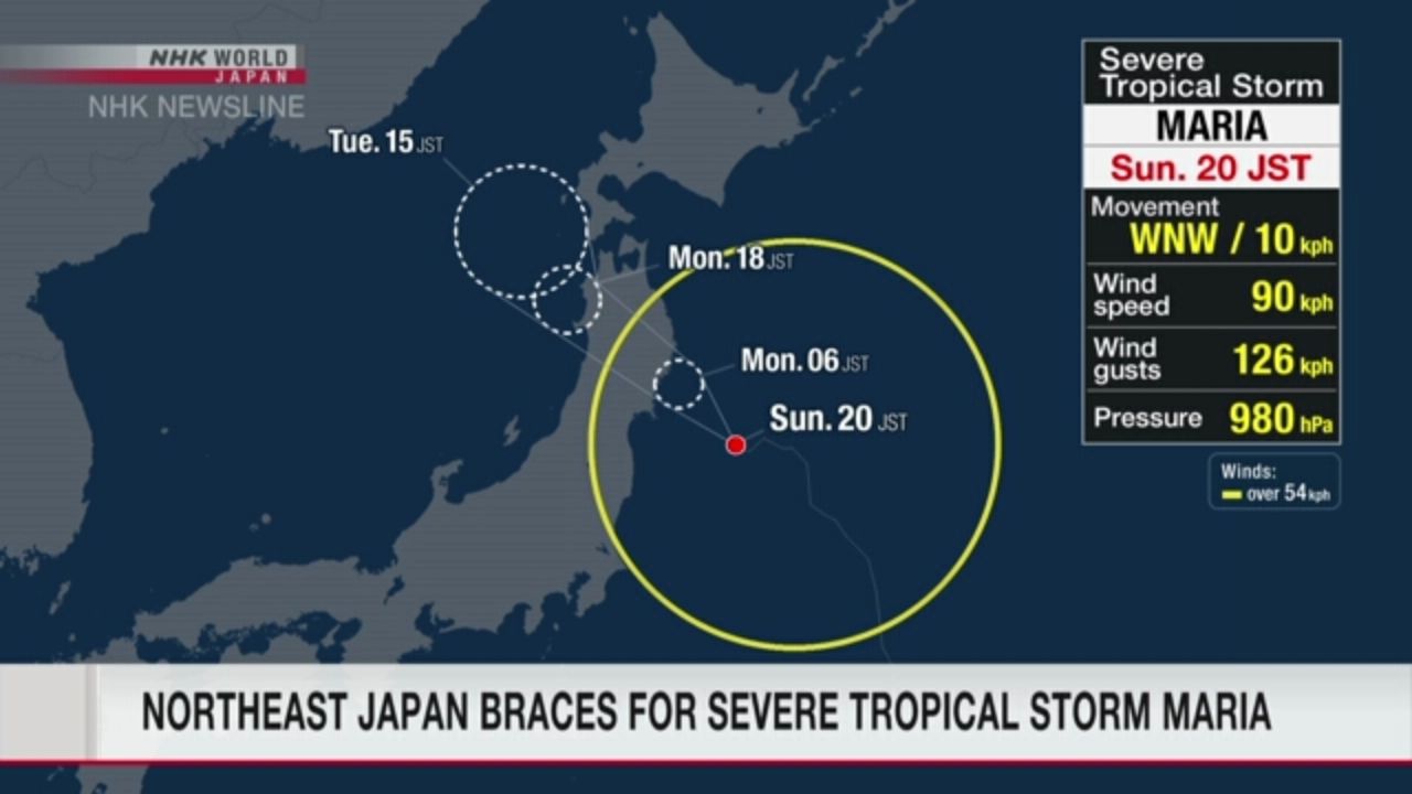预计,“玛莉亚”将以每小时15-20公里的速度向西北方向移动,将穿过日本本州岛北部,移入日本海,强度逐渐减弱。