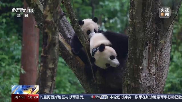 在中国大熊猫保护研究中心卧龙核桃坪基地里,正在接受野化培训的圈养大熊猫“田田”的幼仔,要和妈妈一起去解锁新技能啦。(图/中国央视新闻视频截图)