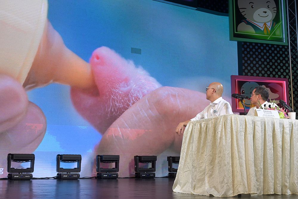 香港海洋公园主席庞建贻表示,对大熊猫“盈盈”产子感到非常开心,“盈盈”是有记录以来最年长初次成功产子的大熊猫,头胎又是龙凤胎,这是非常罕见的案例。这对龙凤胎将继续留在香港接受照顾。