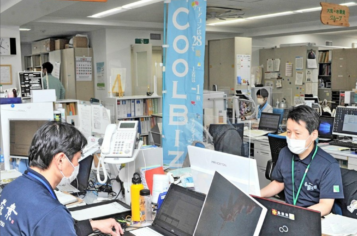 岛根县政府机构维持“28度”室温,但中央空调系统的设计导致部分办公区域温度难以调控,员工开始使用个人风扇辅助降温。一些地方政府采取了新的应对措施,熊本县开始探索更灵活的温度调节方案,兵库县姬路市自2019年以来将室温设定为25度,并发现此举有效减少了加班时间。