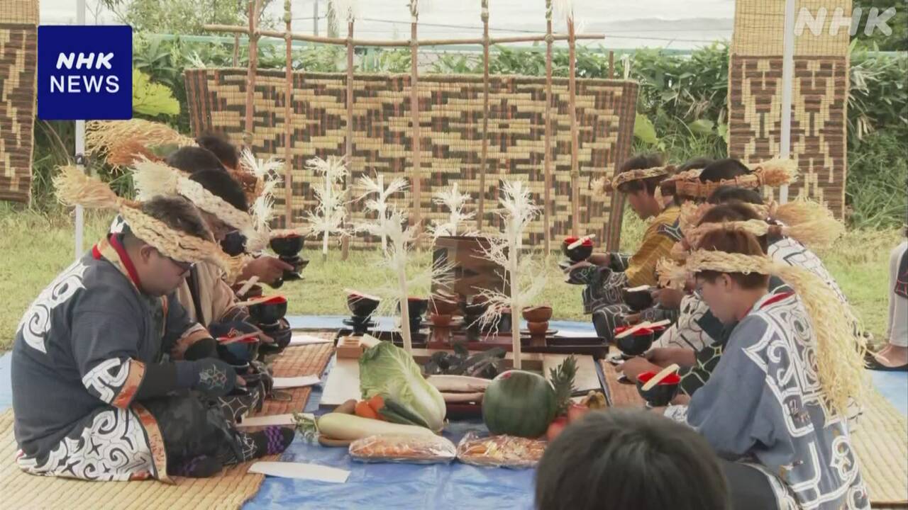 随后,在准备好的祭坛上竖起用柳木制成的阿伊努祭祀用具,并向祖先供奉水果和其他祭品。