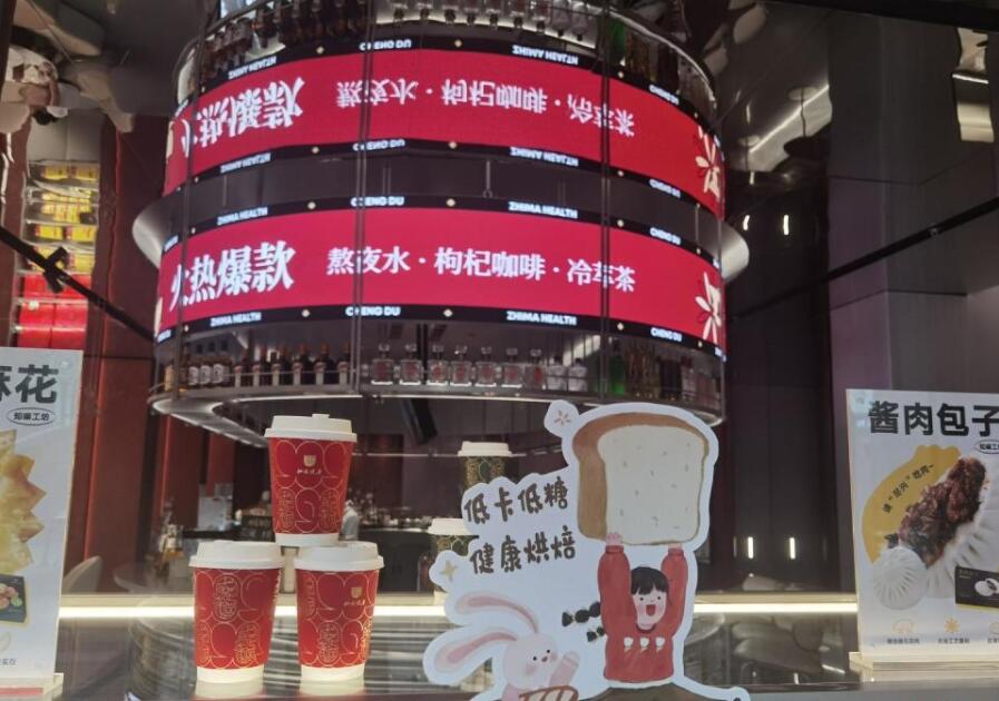 18日临近中午,从事销售工作的高女士撑着太阳伞来到位于春熙路的同仁堂,走进了里面的知嘛健康品牌店。她对着手机说道:“你们要买哪些吃的?这里有普通面包,也有养生的面包,还有枸杞咖啡、养生奶茶这些。”