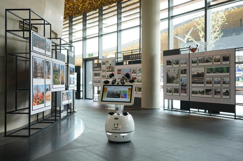 8月23日在成都市“机器人进世园会”活动现场拍摄的“蓉宝”机器人。(新华社)